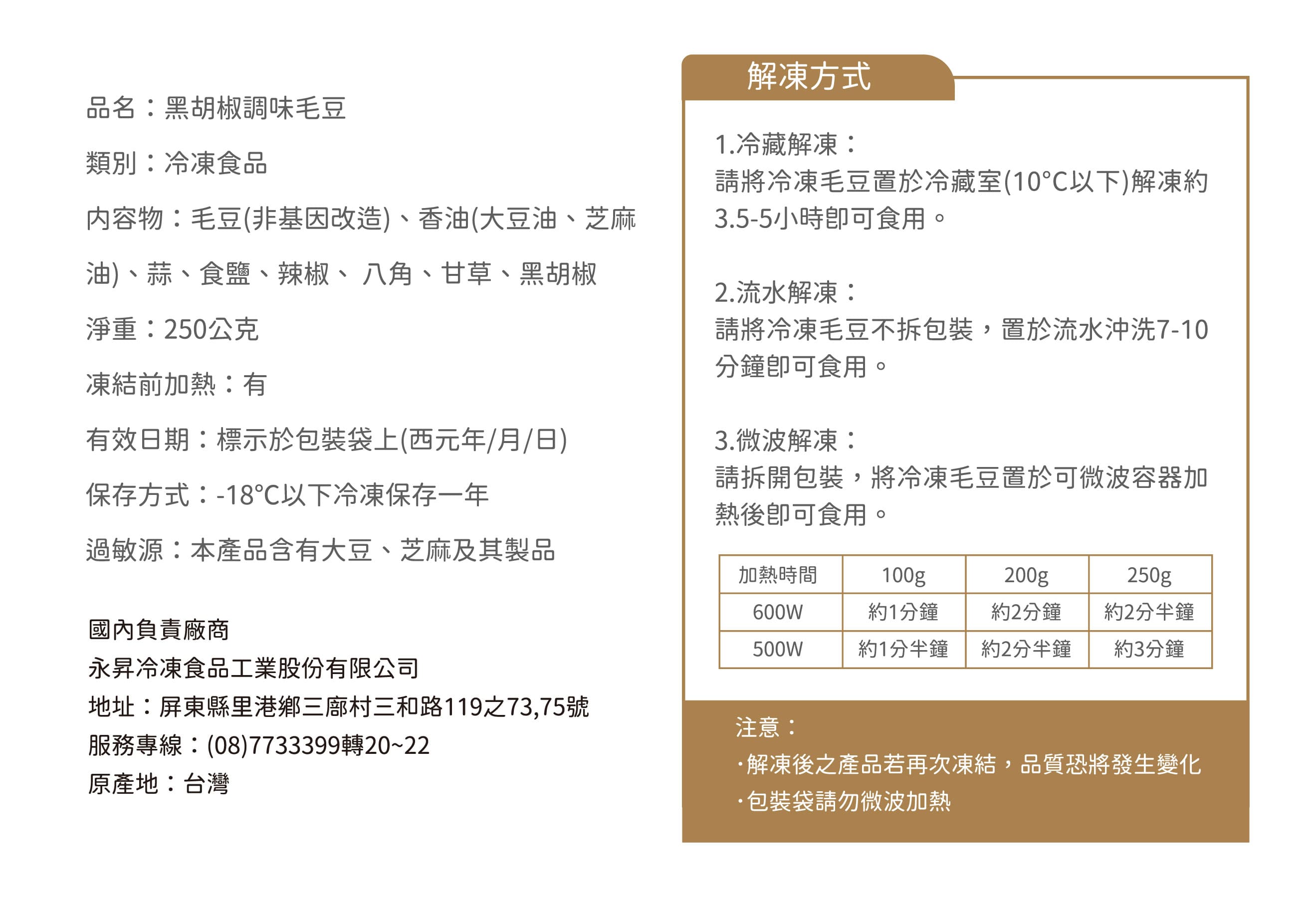 (1) 冷凍商品收到後請清點數量、品項後,儘速放入冰箱冷凍保鮮。